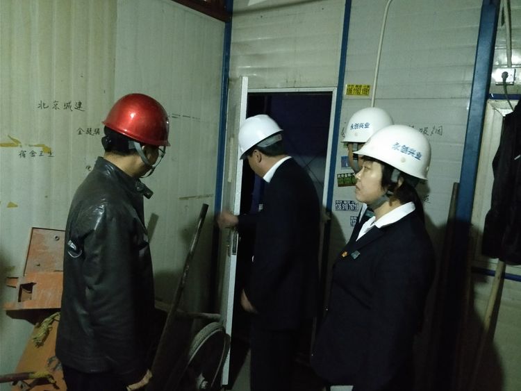 2017年10月23日傍晚,總公司領導班子、安全生產(chǎn)部門領導及永創(chuàng)興業(yè)工程部負責人,在“十九大”期間建設工地全面停工的情況下,突擊且重點檢查各在建工地食堂及工人宿舍的各項安全防范措施及安全生產(chǎn)工作部署情況