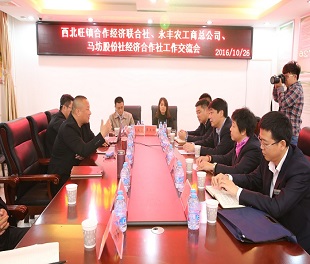 2016年10月26日,西北旺鎮(zhèn)合作經(jīng)濟(jì)聯(lián)合社、永豐農(nóng)工商總公司到東升鎮(zhèn)馬坊村交流訪問,與馬坊股份社經(jīng)濟(jì)合作社在東升鄉(xiāng)馬坊村村委會(huì)會(huì)議室進(jìn)行了工作交流座談。 會(huì)議上永豐農(nóng)工商[2016-10-28]